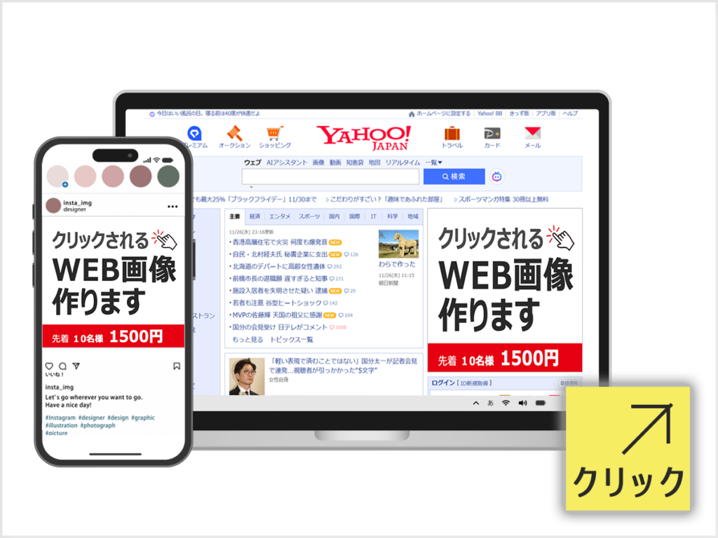 広告バナー、ココナラ出品画像、TikTokのショップ販売画像など、伝えたいことが一目でわかる画像を制作いたします。