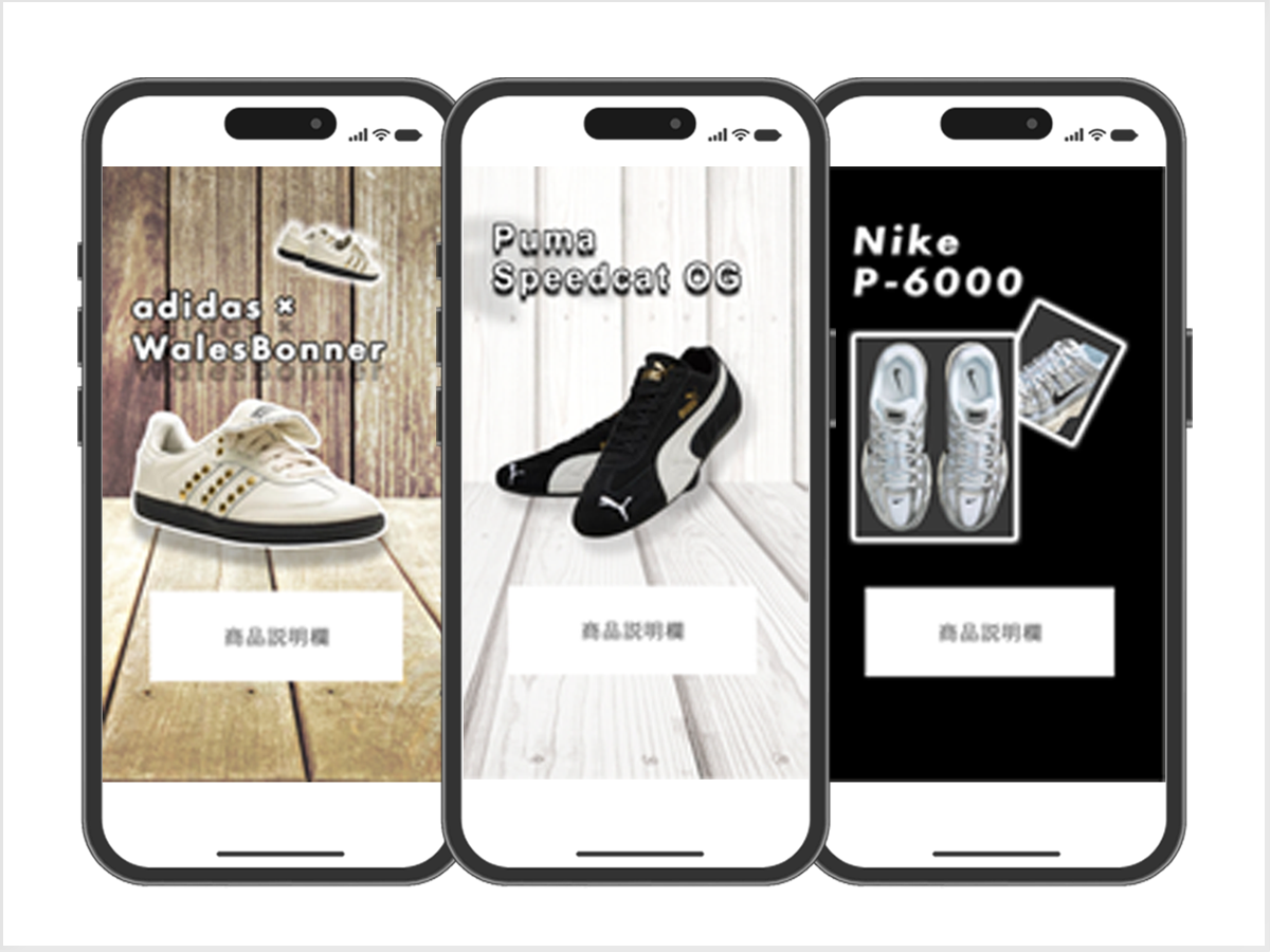 - スニーカーのイメージに合わせた屋外の背景を使用。